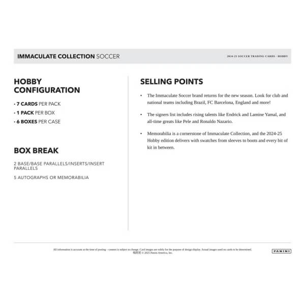 2024-25 Panini Immaculate Soccer Cards PRODUCT Details: