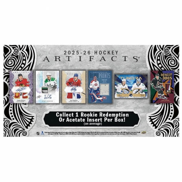 - Najnovšia edícia Artifacts® ponúka nabitú základnú sadu 240 kariet, ktorá obsahuje aj výkupné karty nováčikov z rokov 2025-26.